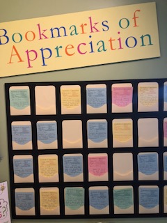 Bookmarks of Appreciation. A peer-to-peer recognition program located in our Staff Lounge where handwritten notes of appreciation are featured for a month and then given to staff members to keep.
