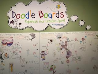 Doodle Wall. Staff suggest topics for creative doodling with makers in the Staff Lunge. With the use of blank foam board mounted on the wall and change it when it’s completely full.